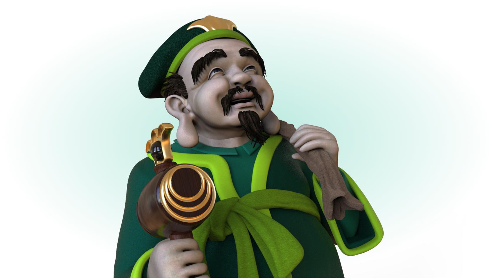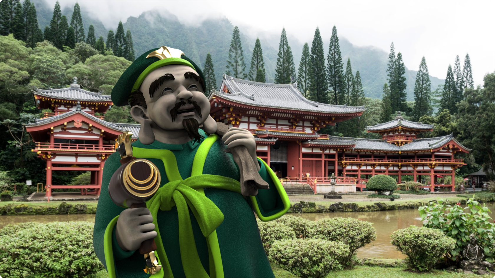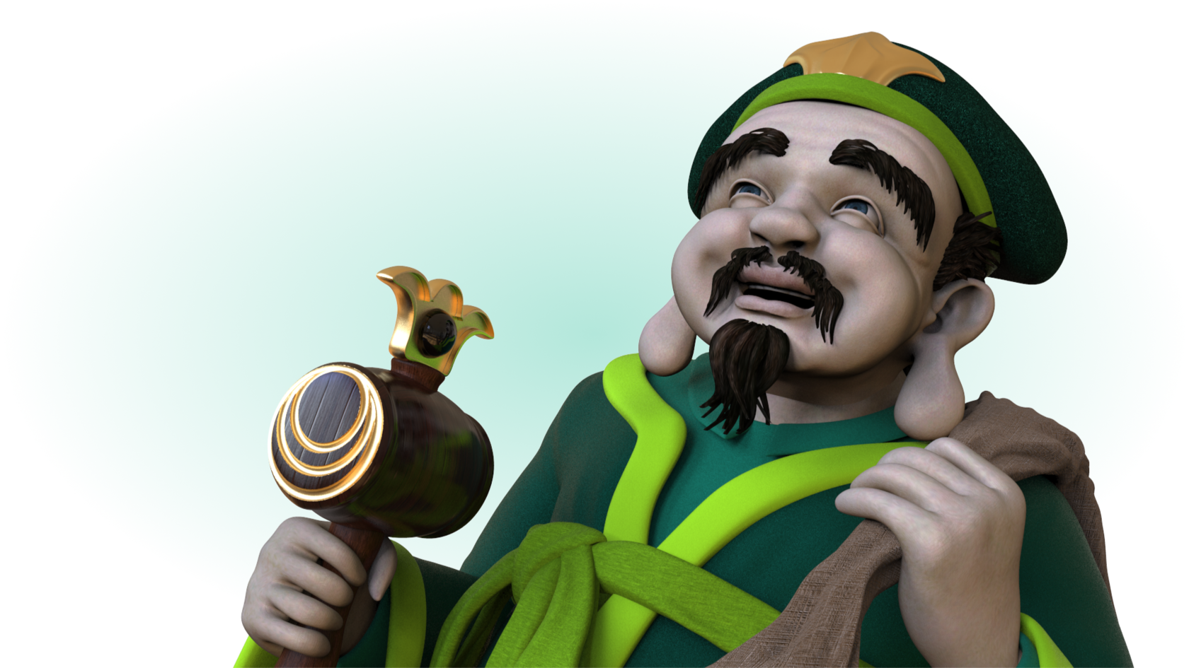 Дайкокутэн изображается с молоточком счастья, с помощью которого он может исполнять желания.