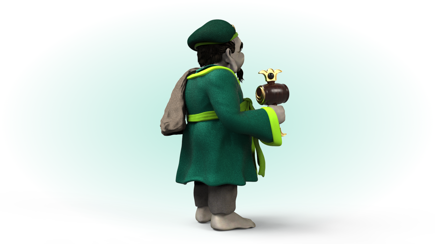 Дайкокутэн изображается с большим мешком за спиной или в руках, символизирующим мешок сокровищ.