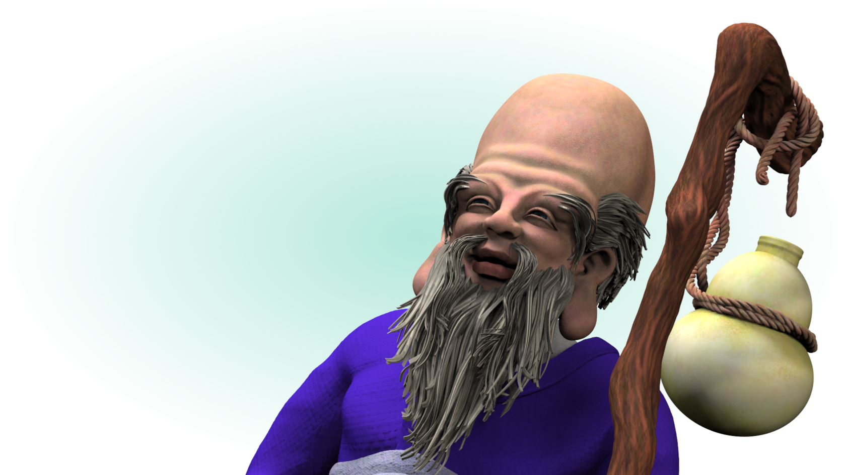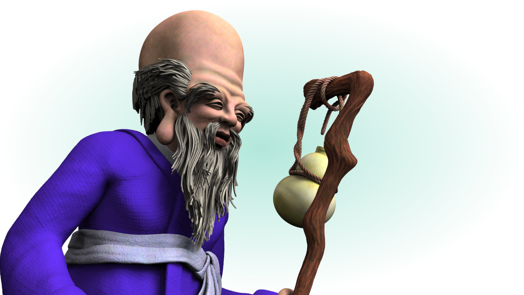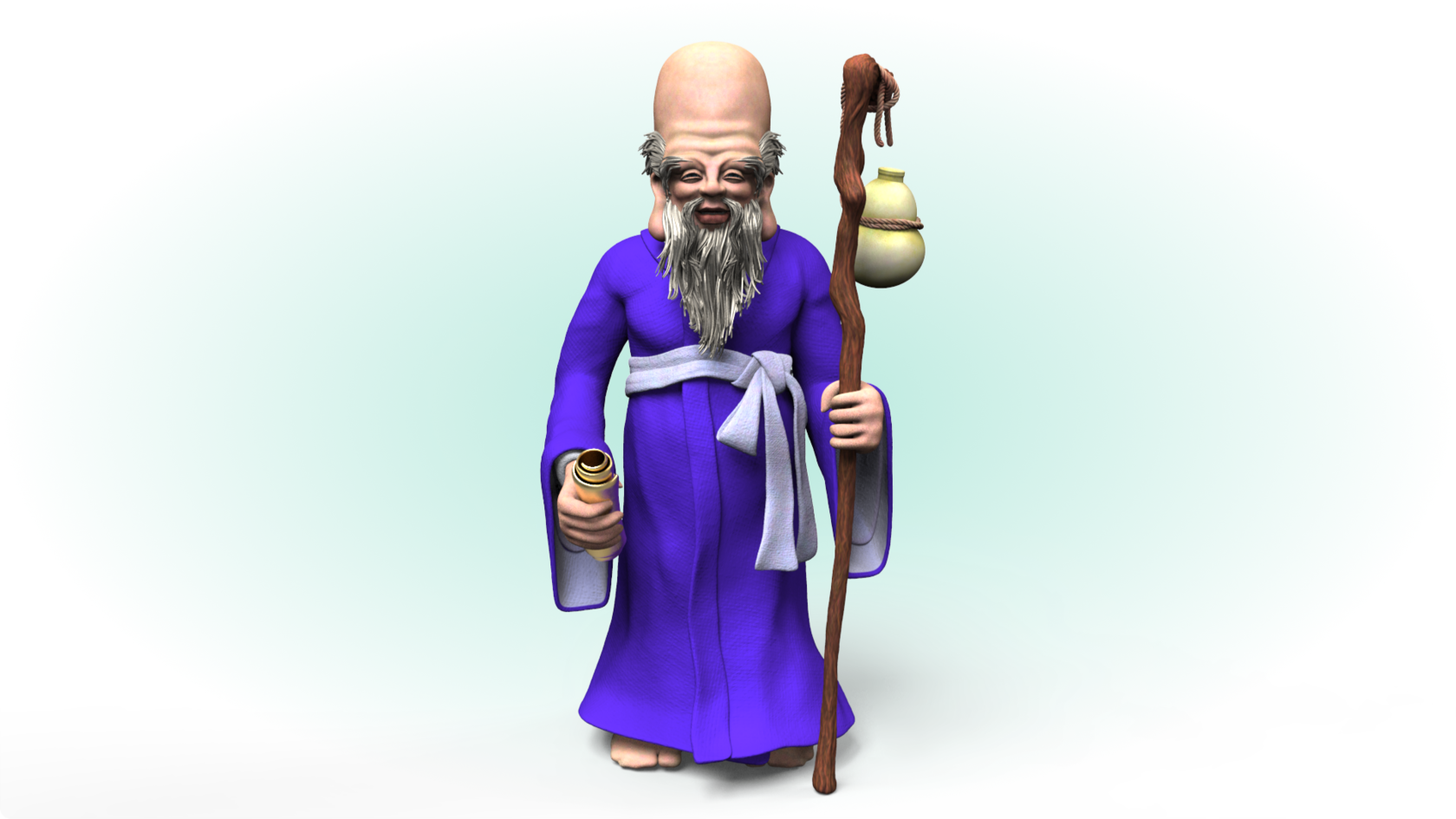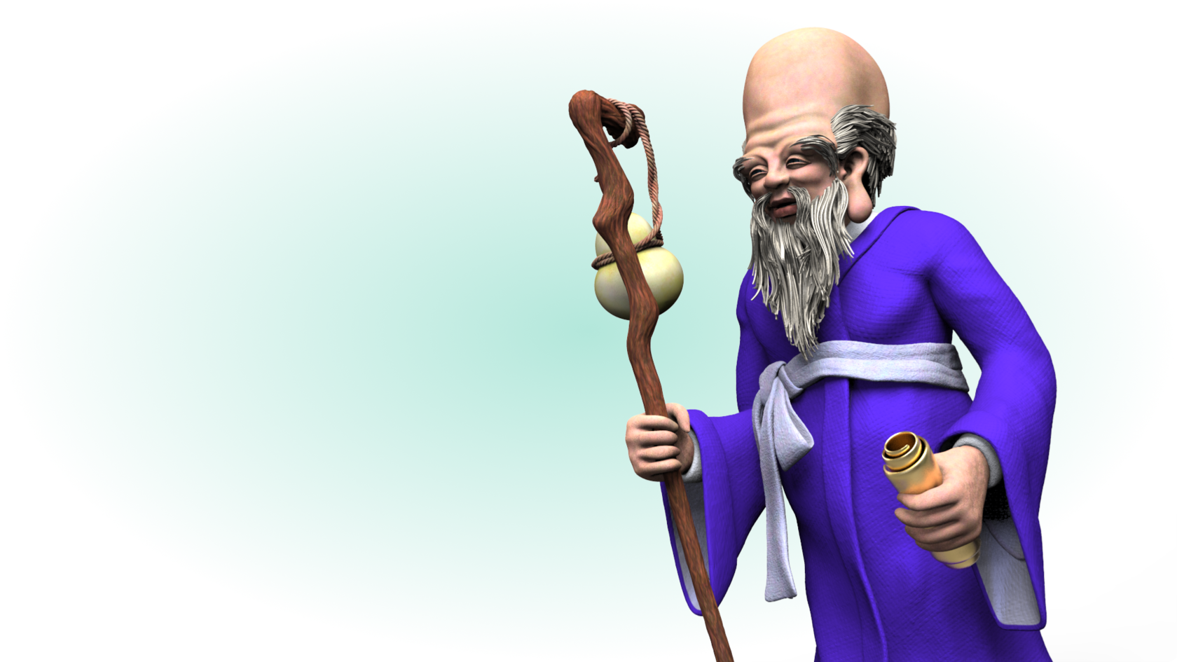Фукурокудзю — можно узнать по необычайно высокому лбу и длинной белой бороде.