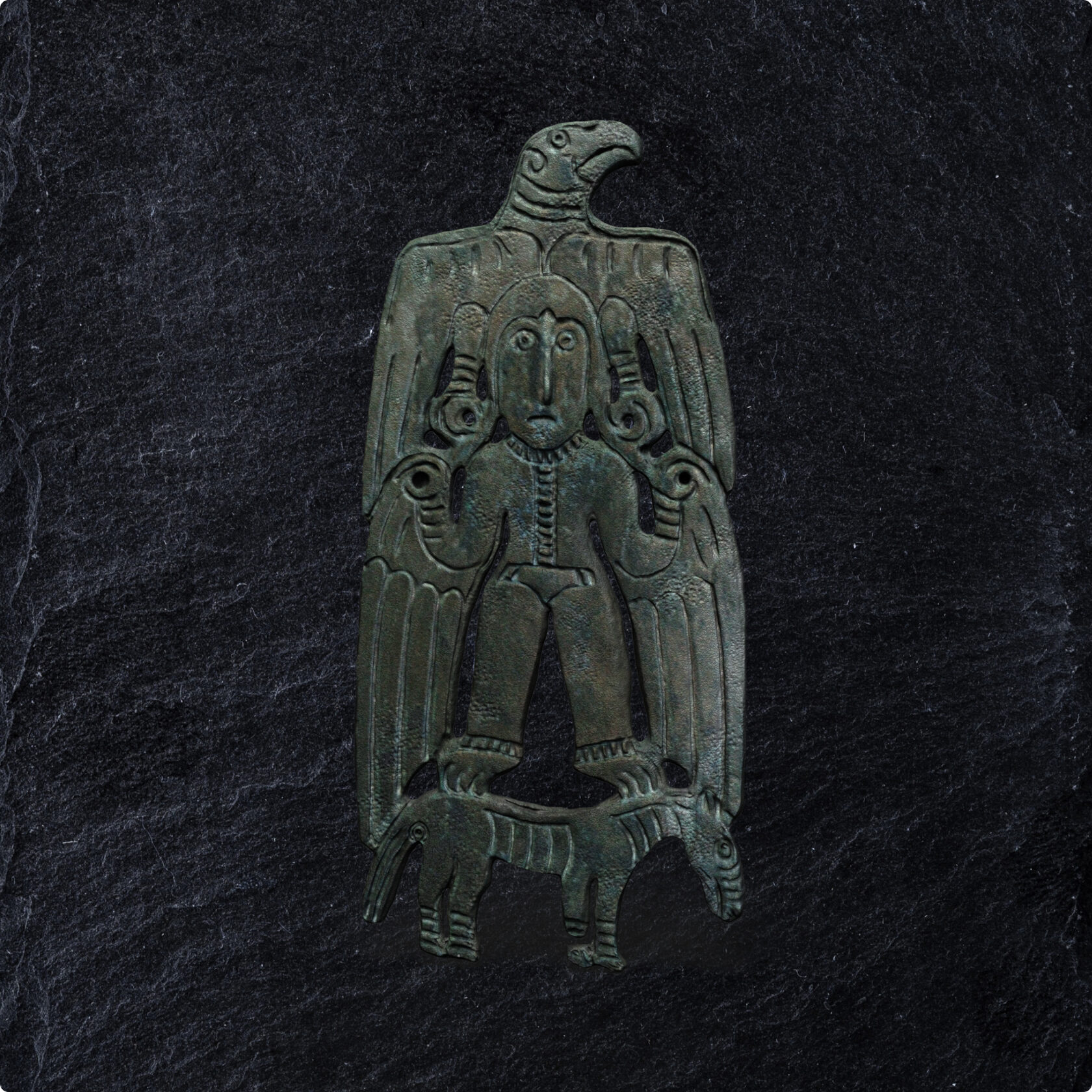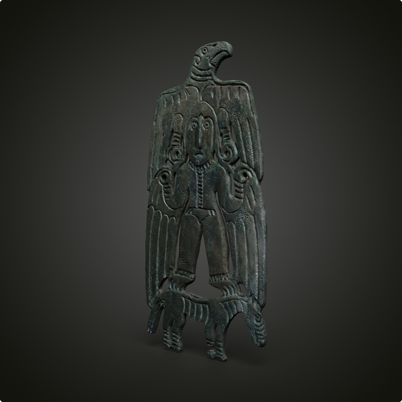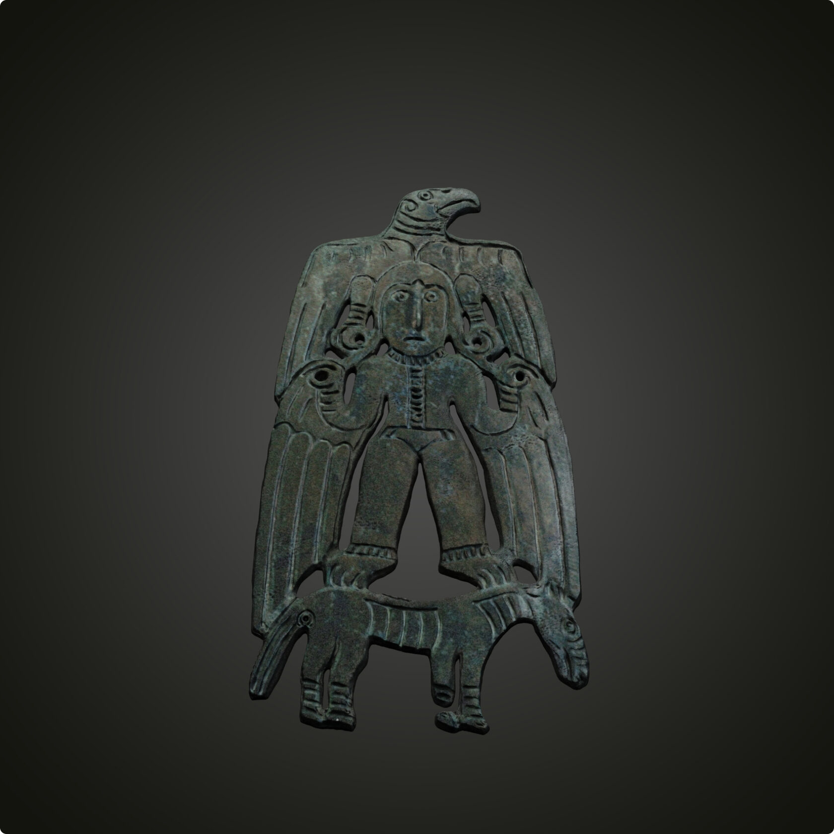Прорезная бляха с крылатой богиней на коне и орлом, сидящим на её плечах. VII — VIII вв.
